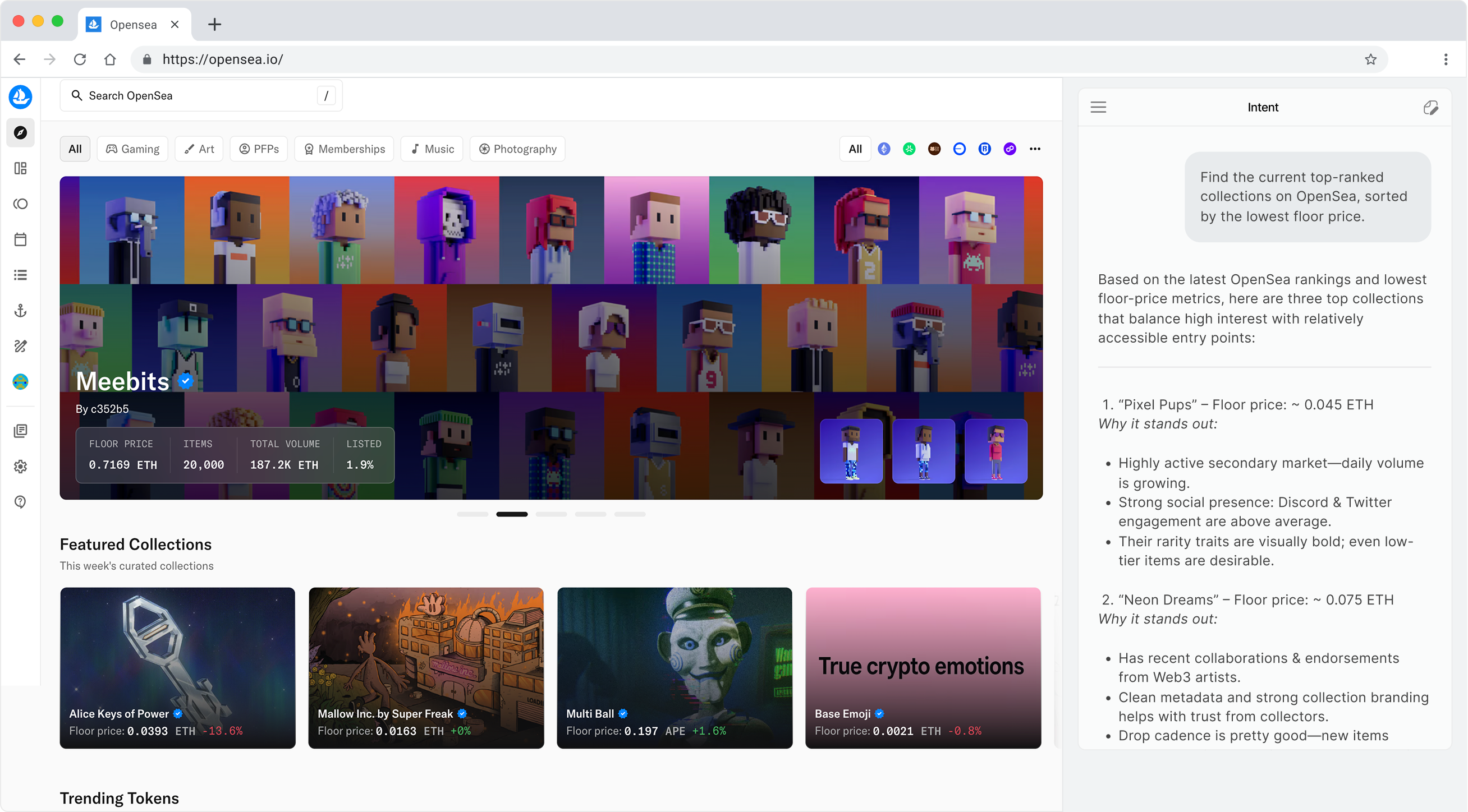 An offering that takes intents generated by a customer’s LLM/agent and executes them through our MCP server, leveraging the Web3 tool catalog (protocol adapters/domain agents)